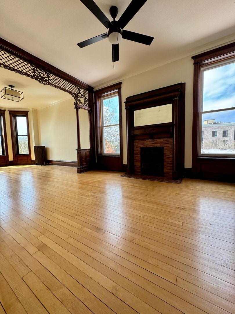 Offering a beautiful vintage corner building at Lincoln Ave. and Grace, this fully renovated three-bedroom, one-bath apartment provides exceptional comfort and style. Ideally situated just a five-minute walk from the Addison Brown Line stop and under ten minutes from the Irving Park Brown Line stop, convenience is right at your doorstep. Directly across from Trader Joe's and within easy walking distance to cafes, bars, and restaurants, this residence combines practicality with urban living. In-unit laundry and ample bike storage are available, and heat is included in the rent. Cats are welcome.